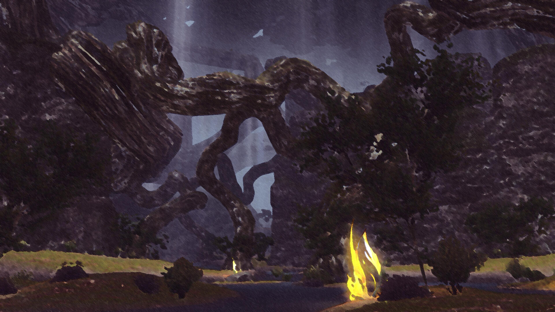 North of the oceanic river mouth, sea salt mixes with groundwater and run-off from the Skatay Range to carve a brackish current through the Golmore Jungle. The viera remember it was here in the neighboring understory that a tribe even more reclusive than many others of the clan made their home.Tangled mangroves line the banks. Life blooms about those estuaries as though untouched by Calamities and time. The Rava know that, with little incentive to journey far for foraging or hunts, the village once flourished. But this has changed with the arrival of men and machines. The great trees that cradled the tribe’s nest are vanished, and in their absence lie chasms where roots used to stretch and newly constructed warrens bustle over ash.Gone from its boughs and verdant paths, the village goes unnamed. By some formless and wordless oath, the last of its denizens seldom speak of their home, sworn to omission—perhaps to keep the bitter sting of loss away, or maybe to preserve the warmth and joy of that place in memory.Whatever their reasons, those Rava claim a difficult choice: to depart from the Wood in the face of some fates worse than a warrior’s valorous death.